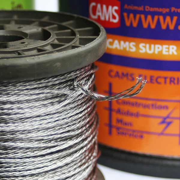 柔らかいステンレス線を12本組にして、施工性と丈夫さを兼ね備えた半永久的電気柵用ツイストワイヤー